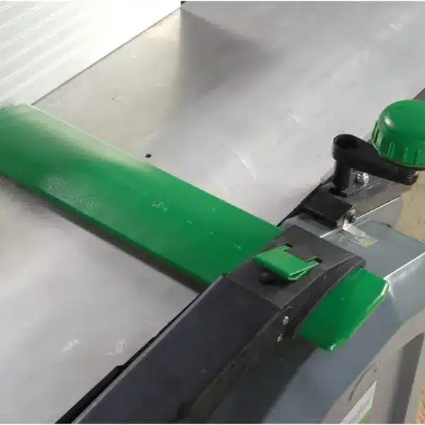 Coplanarité des tables de dégauchissage à vérifier à la règle droite au déballage, écart de quelques dixièmes courant à cette gamme de prix, guide parallèle aluminium dont le 90° pile demande un recalage à l'équerre de mécanicien dès la livraison, garantie standard de 2 ans sans extension longue durée alors que Scheppach annonce jusqu'à 10 ans sur enregistrement, courroies et roulements à contrôler tous les 3 à 6 mois en usage soutenu, tables aluminium qui marquent au moindre choc d'outil et conservent la trace.