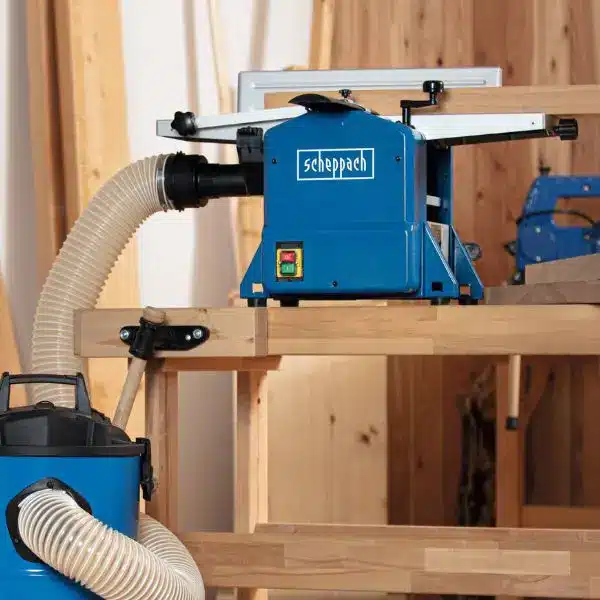 Vous avez un plateau de 28 cm de large à dresser, un garage de 15 m² et un budget qui ne dépasse pas les 700 €. Le rabot électrique portatif a fait son temps, mais les combinées semi-pro à 1 500 € restent hors de portée. C’est exactement le créneau que Scheppach vise avec la HMS 1250 : 305 mm de largeur utile, 1 800 W et quarante kilos sur la balance, le tout pour moins de 700 € chez la plupart des revendeurs français (comptez 150 à 300 € de plus pour l’aspirateur d’atelier, indispensable avec cette machine).